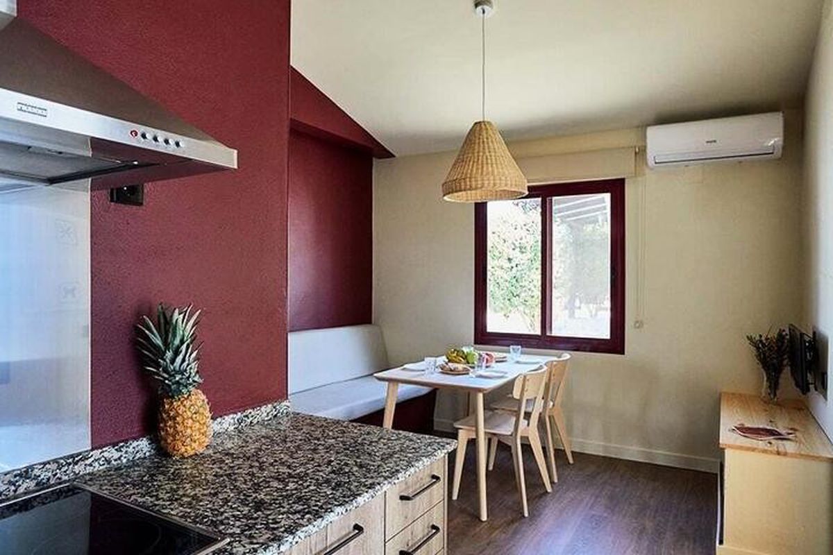 À TAIGA Lake Caspe, vous pouvez opter pour des bungalows contemporains – comme le modèle « Magdalena » (quatre personnes, deux chambres), l'« Albada » pour deux, ou des logements « confort » et « essential » – tous aménagés avec cuisine, matelas haut de gamme et terrasse privée. Si vous préférez le camping classique, des emplacements généreux (7 × 10 m) sont proposés, avec électricité 5 A, et jusqu'à deux animaux sont admis. Le resort dispose d'une piscine rénovée avec un espace de pelouse, d'un restaurant convivial, d'un food-truck (nouveauté 2025), d'un bar-terrasse, d'un espace calisthénie en plein air, d'une zone de barbecues et de salles multi-usages, parfaites pour travailler dans un cadre naturel calme.