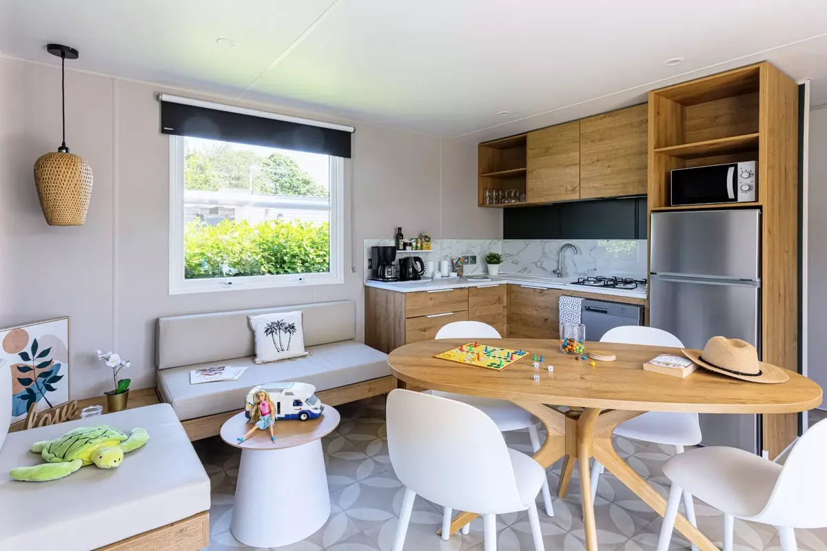 Côté services, tout est pensé pour faciliter le quotidien : un snack-bar offre de quoi se restaurer ou se rafraîchir, une petite épicerie permet de dépanner sans quitter le camping, et un dépôt de pains assure des petits-déjeuners gourmands dès le matin. À cela s'ajoutent une laverie et une borne de recharge pour véhicules électriques, rendant le séjour simple et confortable. Pendant les vacances d'été, le site s'anime davantage avec un programme d'activités qui ponctue la journée. Les enfants rejoignent un club adapté à leur âge, où ateliers manuels, jeux collectifs, parcours ludiques et chasses au trésor rythment leurs matinées. En soirée, le camping propose des rendez-vous conviviaux : spectacles, mini-disco, soirées musicales ou animations familiales permettant à chacun de vivre de vrais moments de partage.