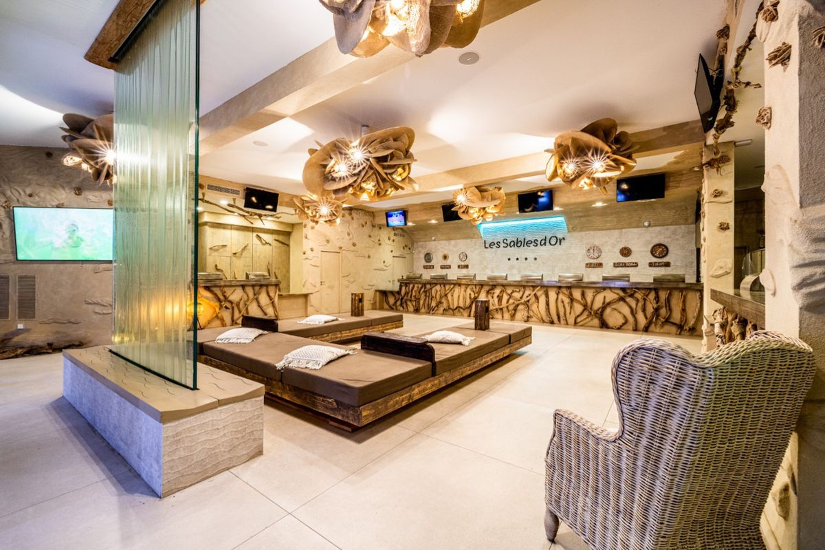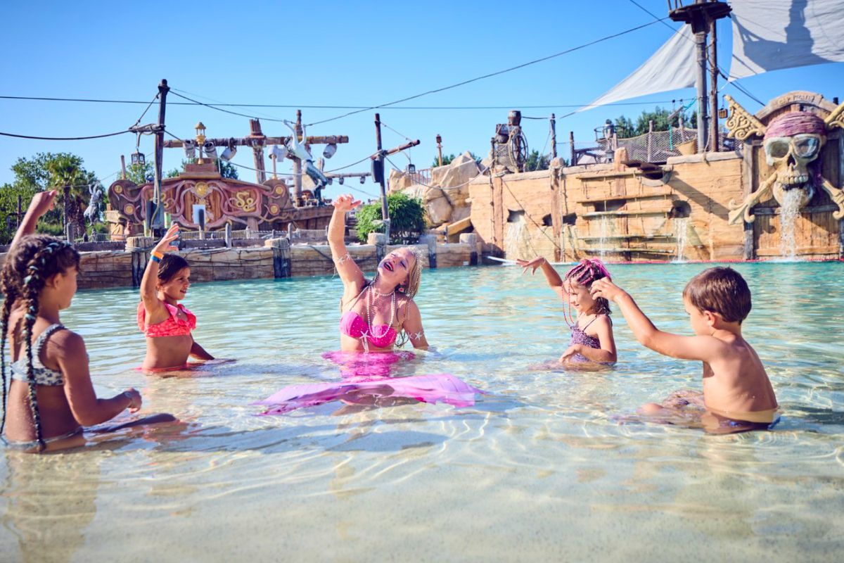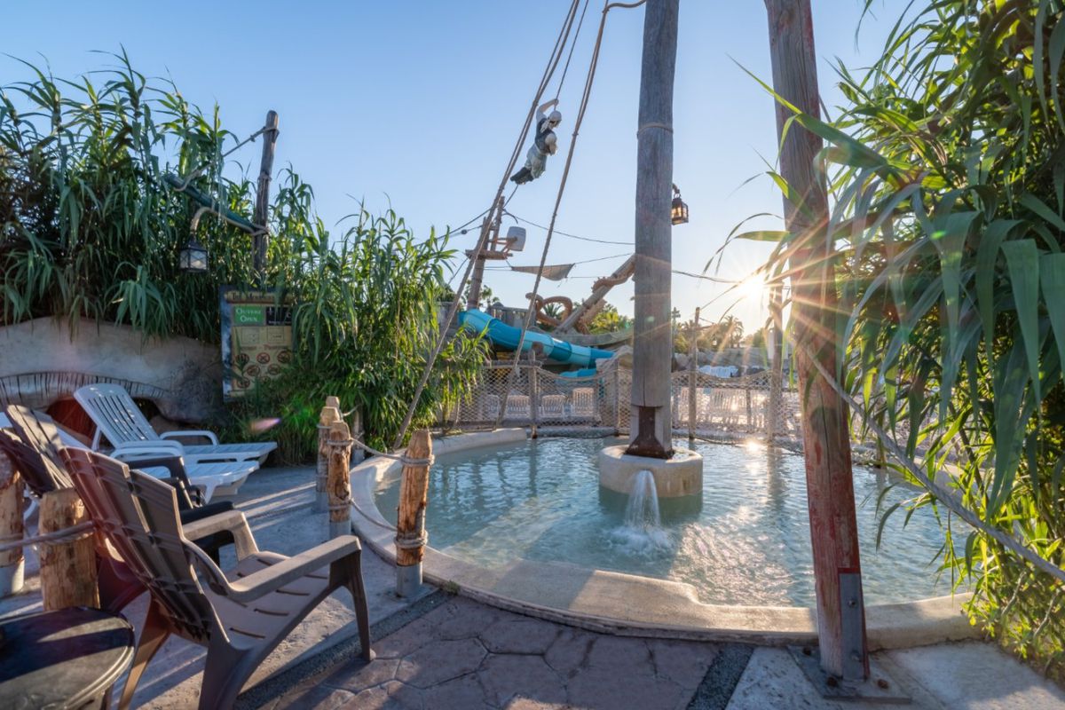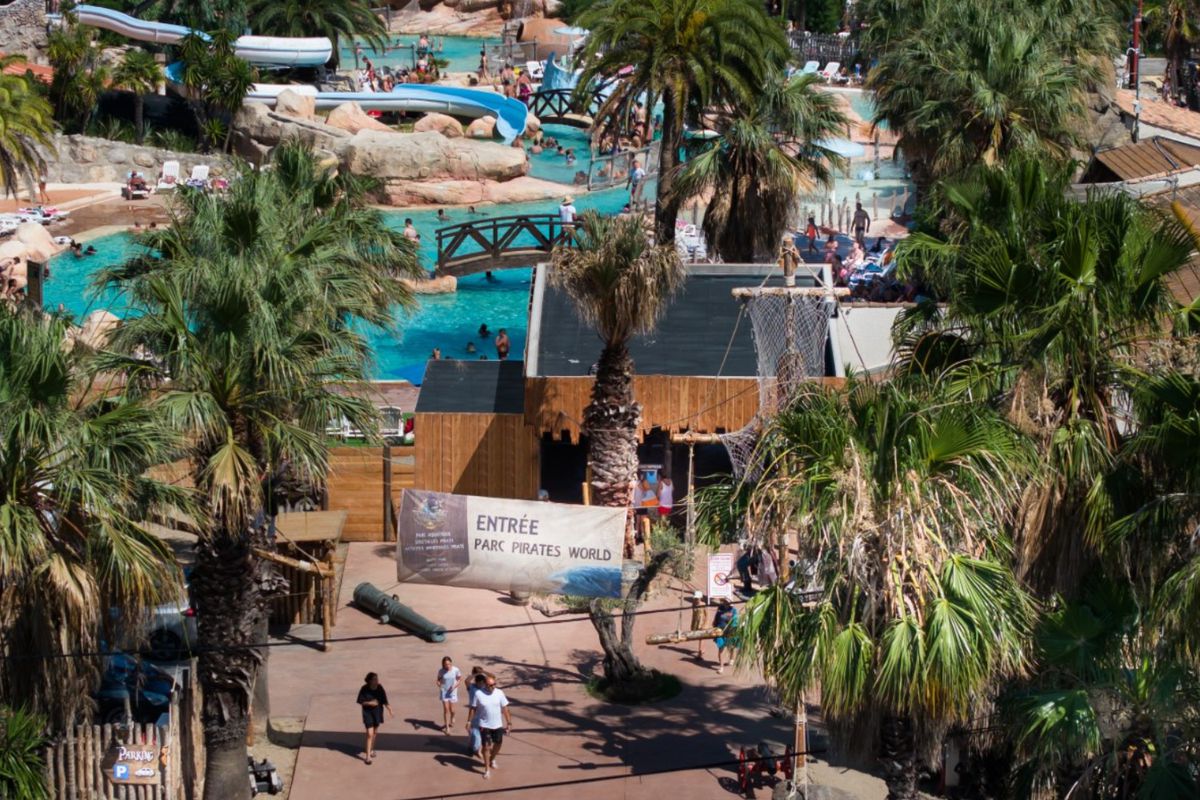 Le Camping Sables D'Or est bien plus qu'un simple lieu de séjour : c'est un véritable village de vacances. Son attraction phare, Pirates World, est un espace aquatique thématisé autour des pirates, avec toboggans, piscine à vagues, rivière à bouées et zones de jeux pour enfants. L'ambiance y est festive et conviviale, parfaite pour partager des moments en famille. Sur place, vous profitez d'une gamme complète de services : plusieurs restaurants et bars, boulangerie, supérette, salon de coiffure et espace bien-être avec sauna et hammam. Les hébergements, confortables, se déclinent en mobil-homes et chalets entourés de verdure, offrant un cadre paisible et reposant. En saison, les animations se succèdent : tournois, clubs enfants, soirées à thème, chasses au trésor ou spectacles. Les plus jeunes plongent dans l'univers des pirates, pendant que les adultes se détendent autour d'un concert ou d'une soirée dansante.