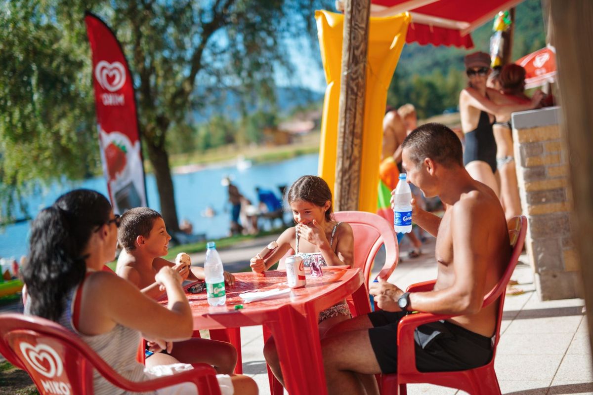 L'offre de restauration contribue pleinement à l'ambiance du lieu. La brasserie propose une cuisine accessible dans un cadre agréable, idéale pour les repas en famille ou entre amis. Le bar du lac devient un point de rencontre apprécié pour profiter d'un verre face à l'eau, tandis que la roulotte à burgers séduit par son esprit décontracté et gourmand. Le bar de la plage complète l'ensemble et renforce l'atmosphère estivale, invitant à prolonger les journées au bord du lac dans une ambiance détendue.