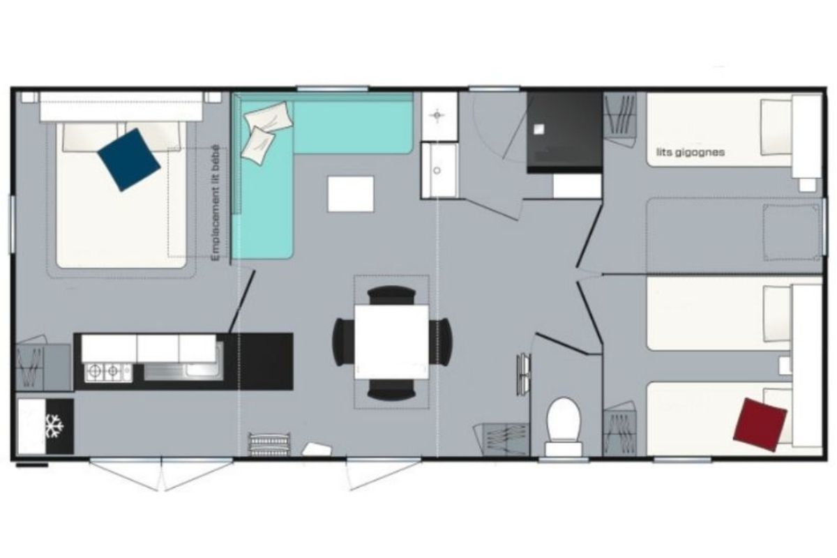 - Lit bébé (sans matelas) ou chaise : 5.50€/jour/article (sur réservation et selon disponibilité, minimum 2 nuits en basse saison et 7 nuits en juillet/août)