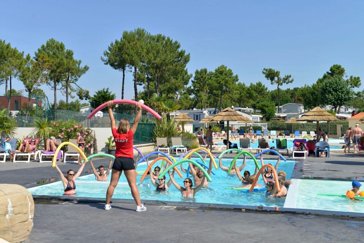 Services et activités Au sein du Camping Le Tropicana, les journées s'écoulent entre détente et divertissement. Le grand complexe aquatique invite petits et grands à savourer les joies de la baignade avec ses bassins extérieurs, ses toboggans et sa pataugeoire ludique. Un espace couvert permet également de profiter des plaisirs de l'eau quelle que soit la météo. Pour prolonger la relaxation, un espace bien-être vous attend avec sauna, hammam et jacuzzi. Les vacanciers les plus actifs apprécient les terrains multisports, la salle de fitness et les nombreuses activités proposées par les animateurs : tournois, ateliers créatifs, spectacles et soirées à thème animent la haute saison. Le restaurant et le bar du camping offrent une cuisine conviviale et des moments de partage, tandis que le snack et le dépôt de pain facilitent la vie quotidienne. Les mobile-homes spacieux et les emplacements ombragés garantissent, eux, confort et intimité pour un séjour tout en sérénité.