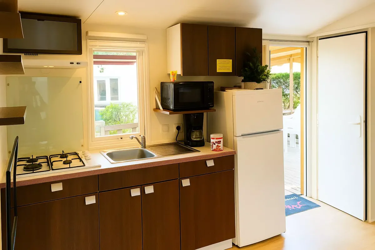 Ménage final : en option 90€/mobil home 3 pièces - 110€/mobil home 4 pièces - sur demande 48h à l'avance