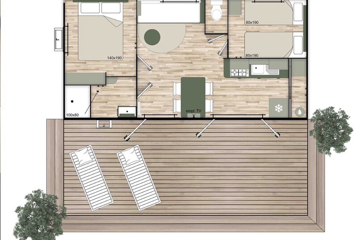 2 pers. incluse - Personne supplémentaire : +12 ans : 7€/jour - de 4 à 11 ans : 5€/jour - de moins de 3 ans gratuit
