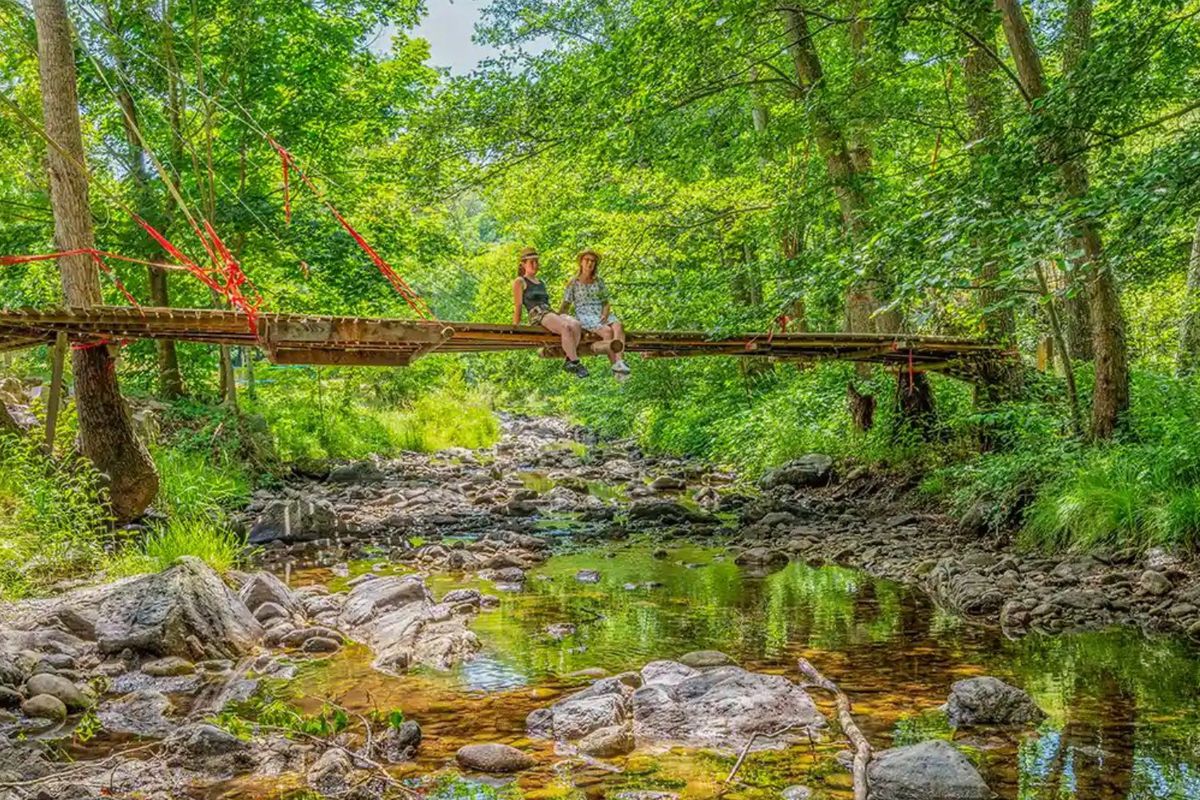 Implanté à Eclassan, au cœur de l'Ardèche verte, le Camping l'Oasis s'inscrit dans un décor naturel paisible, propice à une parenthèse loin de l'agitation. Le site prend place dans une vallée verdoyante, longée par la rivière l'Ay, qui apporte une atmosphère fraîche et apaisante tout au long du séjour. Cette implantation permet de profiter pleinement de la nature environnante, tout en conservant une accessibilité confortable pour rejoindre les principaux axes de circulation et les villages alentour. Le camping constitue un point d'ancrage idéal pour partir à la découverte des paysages ardéchois. Les reliefs doux, les zones boisées et les cours d'eau dessinent un territoire varié, apprécié pour sa richesse naturelle. Depuis le Camping l'Oasis, les vacanciers organisent facilement des excursions vers les sites emblématiques du département, comme les célèbres Gorges de l'Ardèche ou le Pont d'Arc, tout en prenant le temps de découvrir des villages de caractère où traditions et patrimoine façonnent l'identité locale. L'environnement immédiat invite également à la promenade et à la contemplation, offrant un cadre propice à la déconnexion.