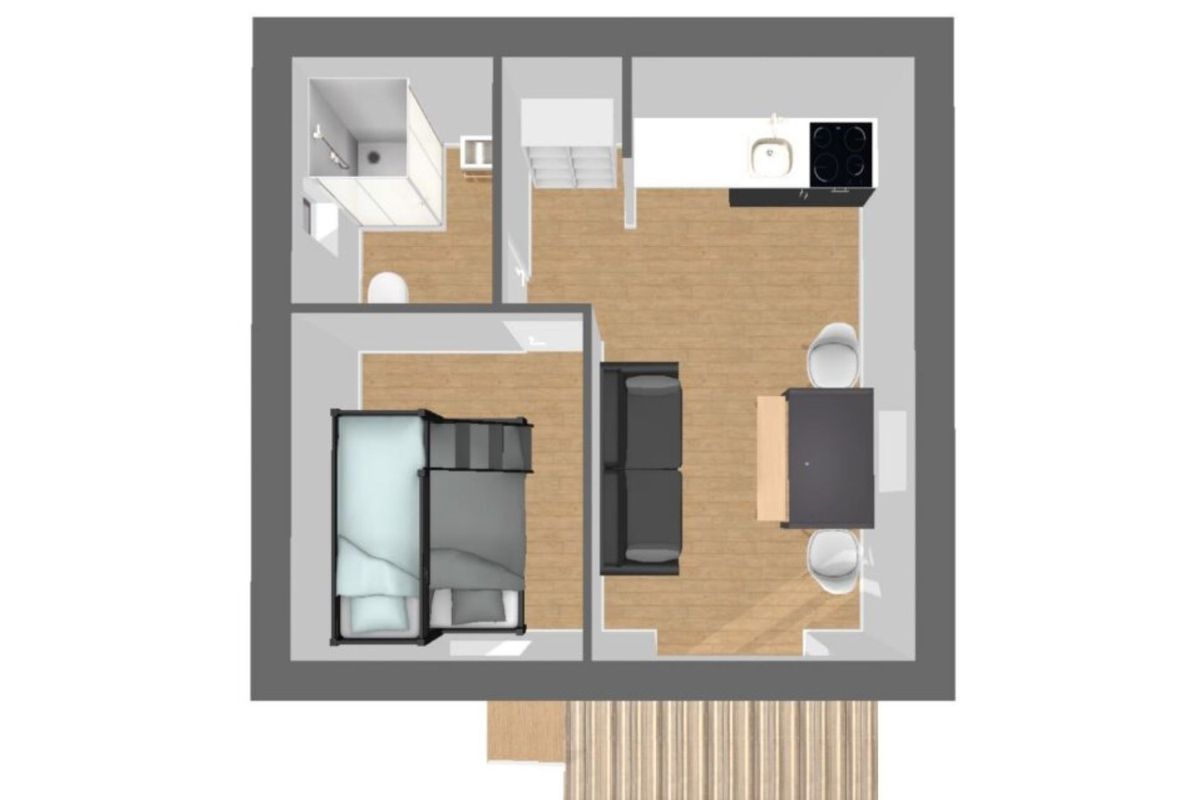 Hébergements installés en terrasse et peuvent poser quelques difficultés d'accessibilité aux PMR