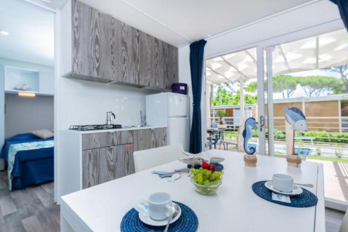 Au sein du Camping Baia Azzurra, tout est pensé pour offrir des vacances confortables et animées, en harmonie avec l'environnement naturel. Vous séjournez dans un domaine verdoyant proposant différentes solutions d'hébergement, allant des emplacements ombragés aux locations modernes avec terrasse, parfaites pour les familles en quête de simplicité et de bien-être. L'un des espaces les plus appréciés reste la zone aquatique, véritable lieu de vie où se mêlent détente et amusement. Deux piscines invitent à la baignade et aux activités sportives comme l'aquagym, tandis qu'un jacuzzi permet de savourer des instants de relaxation. Les enfants profitent d'un parc de jeux d'eau et d'un Spray Park ludique avec fontaines, cascades et structures interactives, créant une ambiance joyeuse tout au long de la journée. Autour des bassins, un solarium équipé de chaises longues et de parasols vous permet de vous reposer en respirant les senteurs de la pinède. Le Camping Baia Azzurra propose également un programme d'animations varié, animé par une équipe dynamique qui organise jeux, ateliers créatifs, tournois sportifs et moments festifs adaptés à tous les âges. Les soirées se déroulent dans une ambiance conviviale avec spectacles, quiz et rendez-vous musicaux, très appréciés des familles. Les enfants se réjouissent aussi de rencontrer la mascotte du camping, véritable compagnon de vacances. Côté loisirs, plusieurs terrains de sport sont accessibles, ainsi qu'un espace fitness en plein air et des parcours propices au jogging. Pour explorer la côte autrement, vous pouvez louer vélos, paddle ou canoë. Enfin, les restaurants sur place mettent en avant la cuisine italienne et méditerranéenne, tandis qu'un marché bien fourni permet de trouver facilement produits du quotidien et spécialités locales.