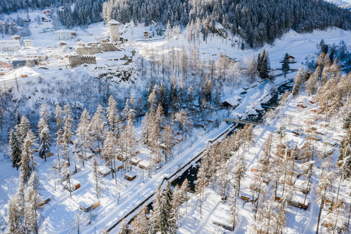 Installé au cœur de la vallée de la Val di Sole, le Camping Cevedale se trouve dans un écrin de verdure au pied des montagnes du Trentin. Cette vallée alpine, connue pour la pureté de son air et la beauté de ses panoramas, s'étend entre deux parcs naturels prestigieux : le parc national du Stelvio et le parc Adamello-Brenta. Depuis le camping, la vue embrasse les sommets enneigés, les forêts de sapins et les prairies fleuries, offrant un décor naturel propice à la détente et à l'évasion. Facile d'accès, l'établissement se situe à proximité immédiate du village d'Ossana, où l'on découvre un charmant centre historique dominé par un château médiéval. Vous rejoignez aisément les commerces et restaurants, tout en profitant d'un environnement paisible, à l'écart de l'agitation. Les stations de ski du Tonale, de Marilleva et de Folgarida se trouvent à courte distance, tout comme de nombreux départs de randonnées. En été, les chemins serpentent entre torrents et alpages, tandis qu'en hiver, la neige transforme la vallée en véritable paysage de carte postale.